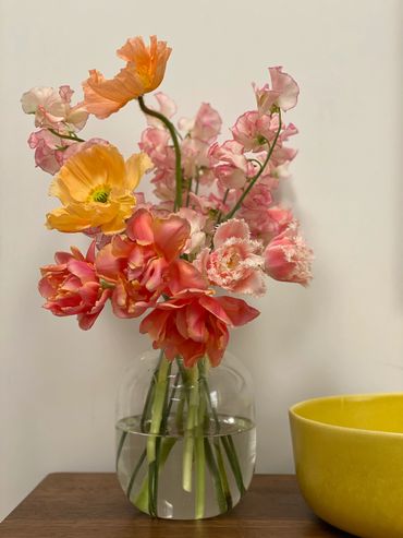 This mid-size arrangement brings in-season botanicals you won’t find at the market. Unusual varieties, nuanced color palettes, and unexpected compositions—crafted to live as a part of your home’s visual language. More than a bouquet: it’s a rotating work of floral art curated for the design-minded city dweller.